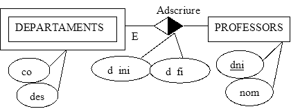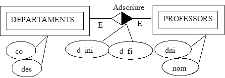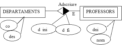 R.E.de Profesores respecte a la relació adscriure:Profesores = DNI + ...