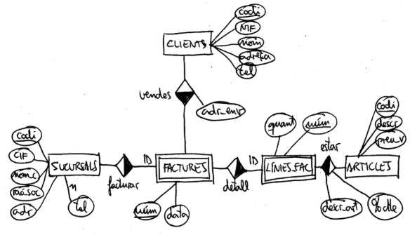 B1M-1: Haz el paso a tablas del siguiente esquema E/R: