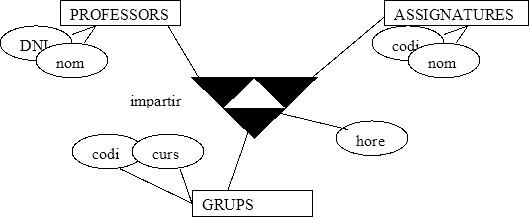 T-1: Profesores, Asignaturas, Grupos (M:M:M)