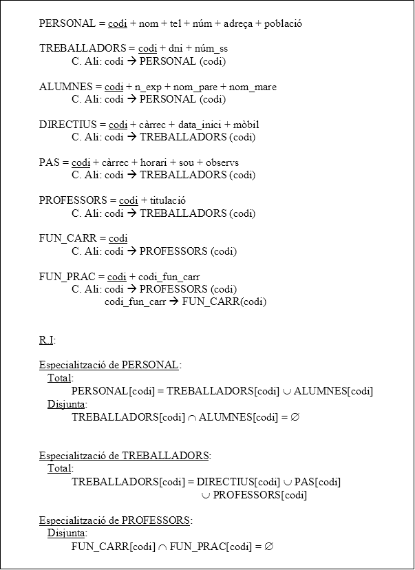 R.I: l’especialització és disjunta. Per tant: