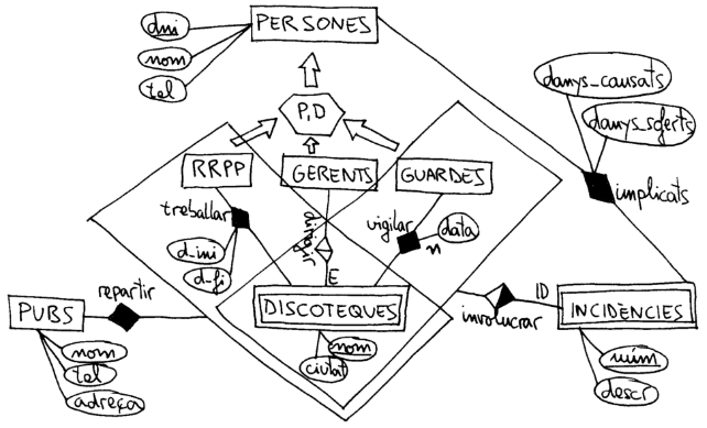 - (guarda + discoteca + núm_inc) --> INCIDÈNCIES (guarda + discoteca + núm_inc)