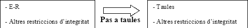 Esta técnica se utiliza cuando partimos de un esquema ER . Aplicándole unas reglas obtendremos el conjunto de tablas correspondiente. También se debe intentar pasar a tablas las demás restricciones que no se podían captar en el ER. Las que no se puedan pasar a tablas, quedarán todavía como “otras restricciones de integridad”.