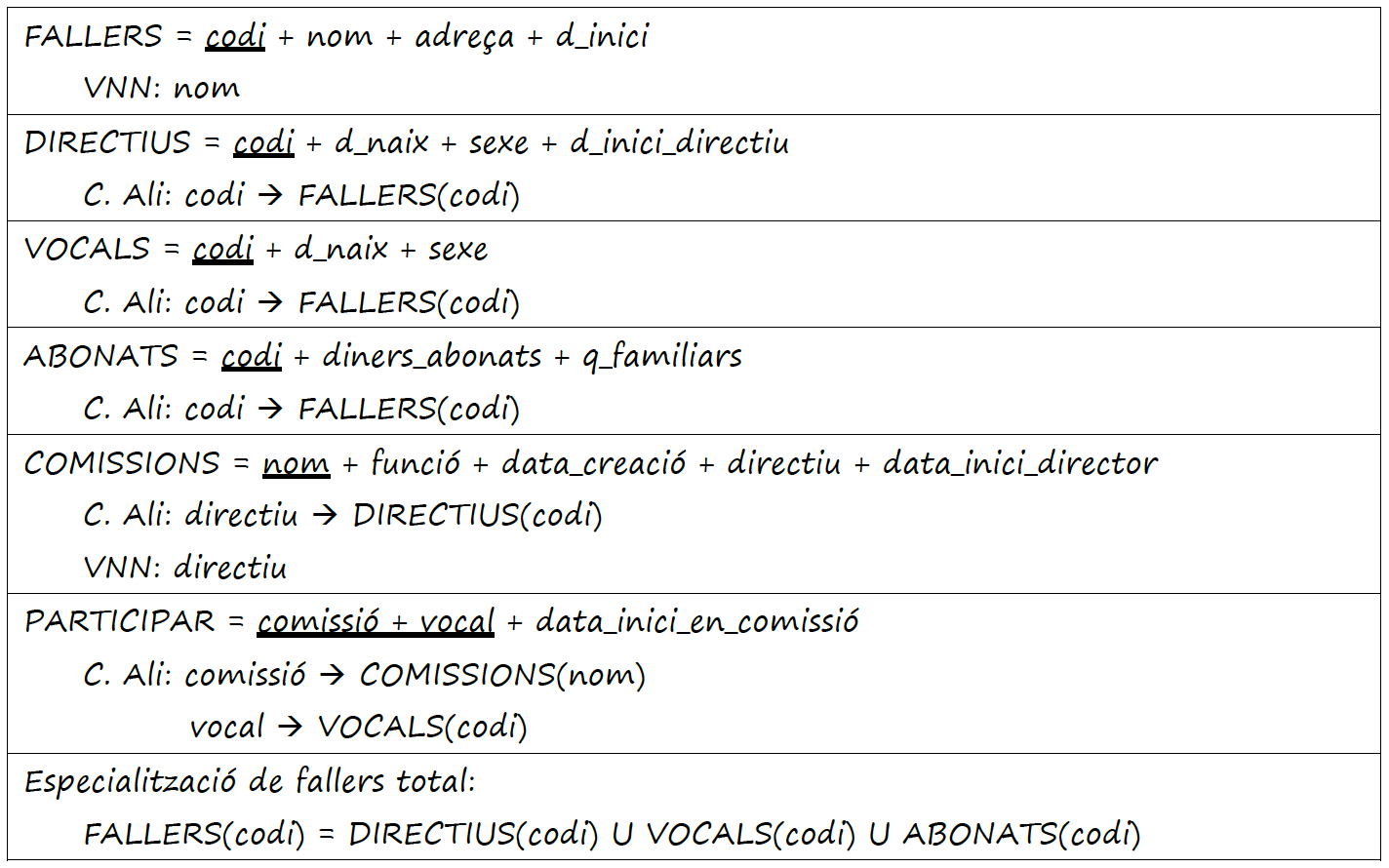 INGENIEROS = DNI + Nombre + Cog1 + Cog2 + Fecha_nace +Dirección + Licenciatura