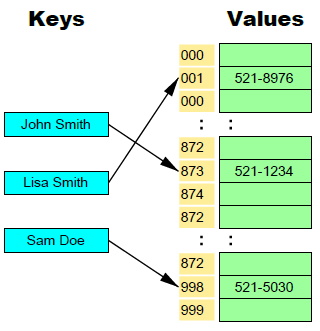 En este sistema, cada element és identificat per una clau única, permetent així una recuperació ràpida. Són molt eficients en lectura i escriptura.
