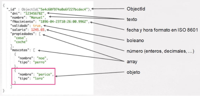 En les BD documentals, en el nostre cas MongoDB, els documents seran estructures JSON.