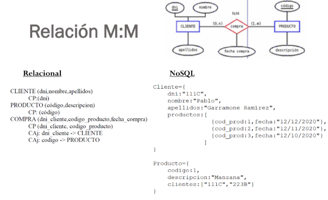 Les BD NoSQL són sistemes d'emmagatzemament d’informació que no compleixen l’esquema Entitat-Relació, ni l’estructura de taula on es guarden les dades. Estos sistemes emmagatzemen la informació mitjançant: