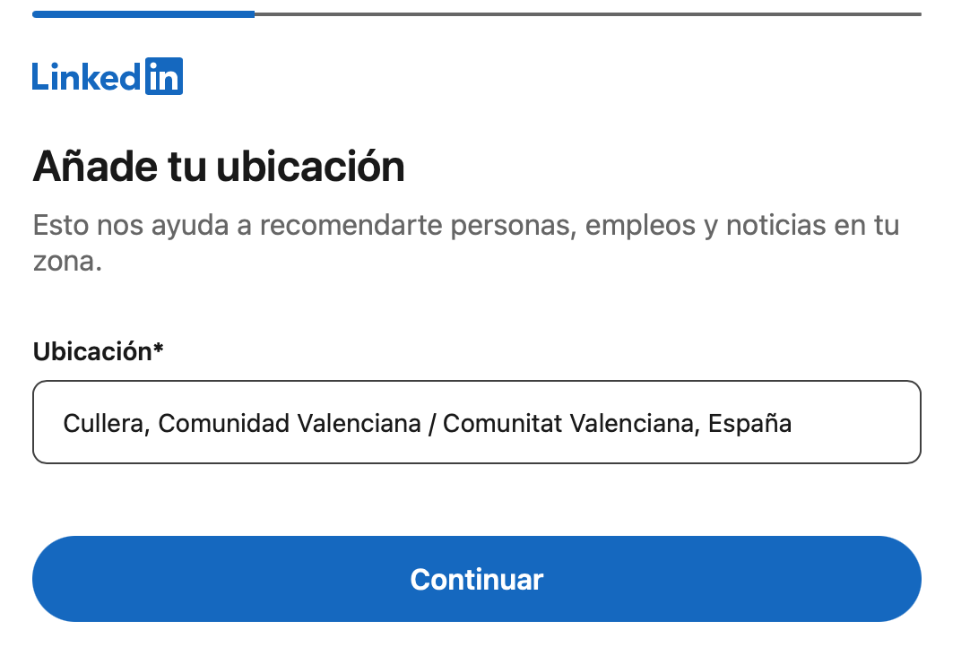 El siguiente paso es completar los datos solicitados sobre nuestra ubicación y formación.