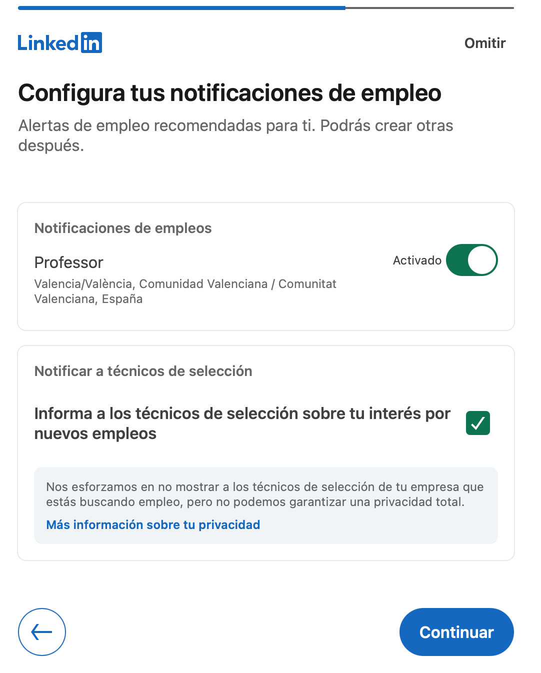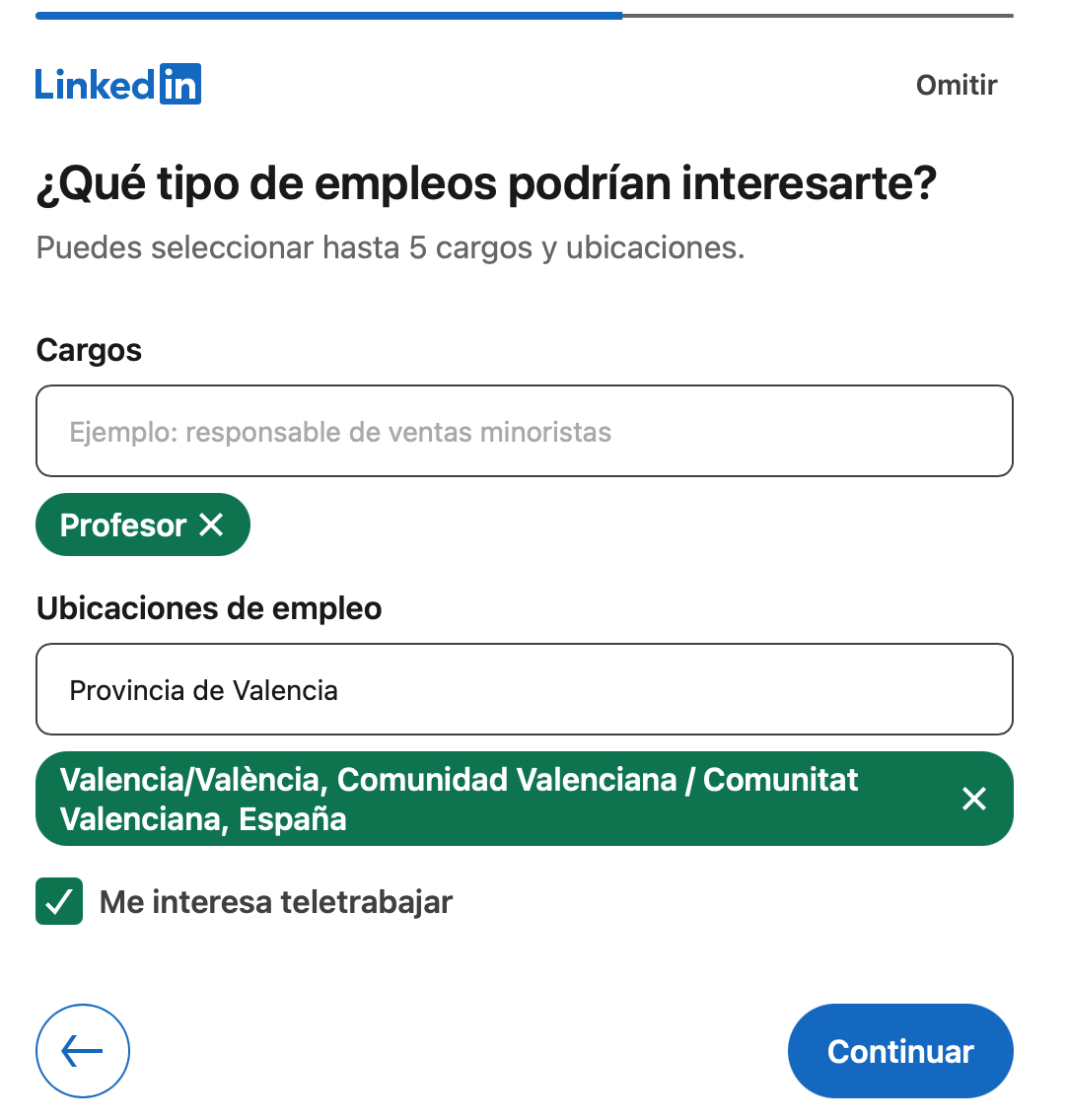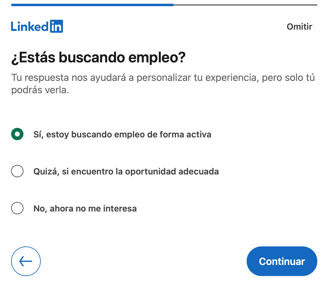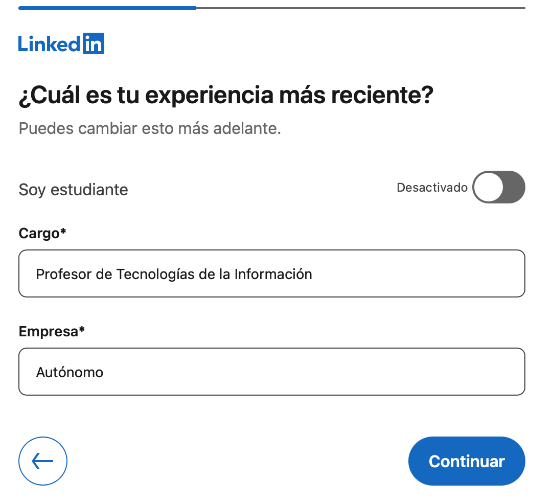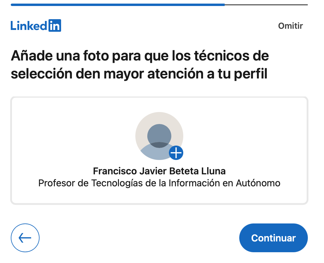 Ahora, aunque el perfil ya está creado es importante completar la información que se nos va pidiendo para completar nuestro perfil profesional.