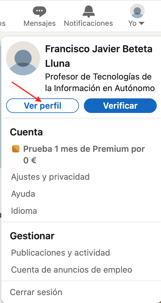 Ahora para volver a tu perfil, haz clic en tu foto de perfil en la esquina superior derecha y selecciona "Ver perfil".